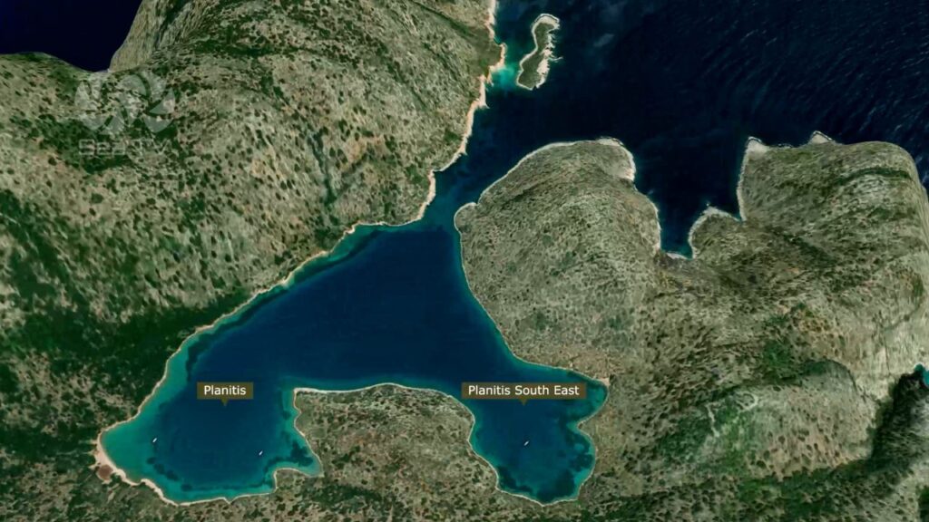 Planitis Bay – South East is known for its excellent protection from wind and swell. Many sailors describe it as feeling almost like anchoring on a lake once inside.